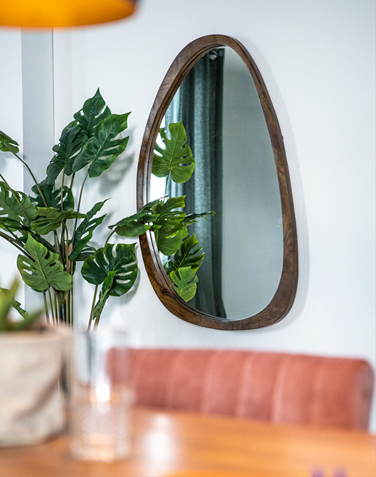 Wil jij de ruimte groter doen lijken? Dan zijn onze spiegels dé truc! Spiegels vangen veel licht waardoor de woonkamer ruimtelijker wordt en meer diepte krijgt. Helemaal niks mis met een beetje gezichtsbedrog. Ga voor één groot exemplaar of hang meerdere kleine spiegels bij elkaar voor een wat speelsere uitstraling. Naast ronde spiegels zijn de spiegels met organische vormen nog steeds ontzettend populair. Een van onze favorieten spiegels in een organische vorm is de spiegel Plecto. Ben jij ook fan?